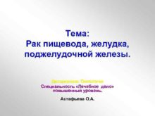 Тема Рак пищевода желудка поджелудочной железы Дисциплина Онкология