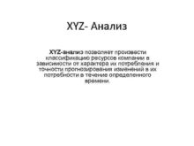 XYZ- Анализ XYZ-анализ позволяет произвести классификацию ресурсов компании