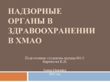 НАДЗОРНЫЕ ОРГАНЫ В ЗДРАВООХРАНЕНИИ В ХМАО Подготовила студентка