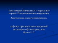 Тема лекции Митральные и аортальные пороки Гемодинамические нарушения