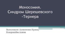 Моносомия Синдром Шерешевского -Тернера Выполнили Алексеенко Ирина Кондрашёва