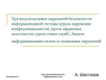 Три вида возможных нарушений безопасности информационной системы угроза
