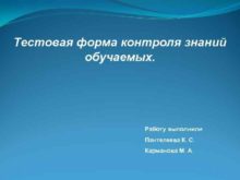 Тестовая форма контроля знаний обучаемых Работу выполнили Пантелеева