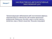 Лекция 7 НАСЛЕДСТВЕННО-ДЕГЕНЕРАТИВНЫЕ ЗАБОЛЕВАНИЯ ЦНС Прогрессирующие заболевания ЦНС