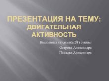 ПРЕЗЕНТАЦИЯ НА ТЕМУ ДВИГАТЕЛЬНАЯ АКТИВНОСТЬ Выполнила студентка 28