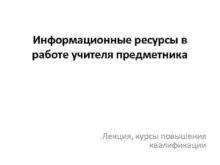 Информационные ресурсы в работе учителя предметника Лекция курсы