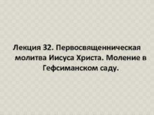 Лекция 32 Первосвященническая молитва Иисуса Христа Моление в