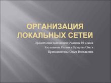 ОРГАНИЗАЦИЯ ЛОКАЛЬНЫХ СЕТЕЙ Презентацию выполнили ученицы 10 класса