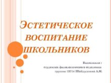 ЭСТЕТИЧЕСКОЕ ВОСПИТАНИЕ ШКОЛЬНИКОВ Выполнила студентка филологического отделения