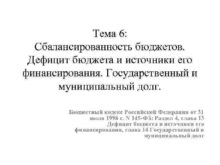 Тема 6 Сбалансированность бюджетов Дефицит бюджета и источники
