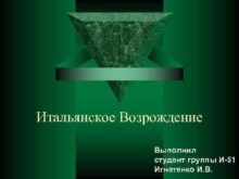Итальянское Возрождение Выполнил студент группы И-51 Игнатенко И