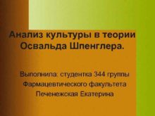 Анализ культуры в теории Освальда Шпенглера Выполнила студентка