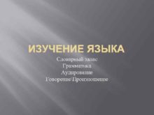 ИЗУЧЕНИЕ ЯЗЫКА Словарный запас Грамматика Аудирование Говорение Произношение
