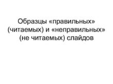 Образцы правильных читаемых и неправильных не читаемых слайдов