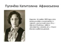 Пугачёва Капитолина Афанасьевна Родилась 14 ноября 1932 года