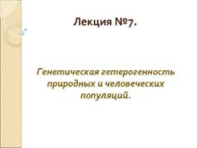 Лекция 7 Генетическая гетерогенность природных и человеческих