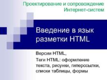 Проектирование и сопровождение Интернет-систем Введение в язык разметки