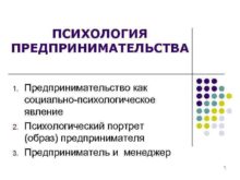 ПСИХОЛОГИЯ ПРЕДПРИНИМАТЕЛЬСТВА 1 2 3 Предпринимательство как социально-психологическое