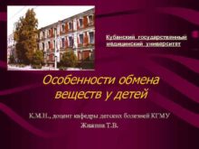 Кубанский государственный медицинский университет Особенности обмена веществ у