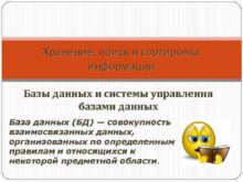 Хранение поиск и сортировка информации Базы данных и