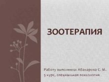 ЗООТЕРАПИЯ Работу выполнила Абакарова С М 5 курс