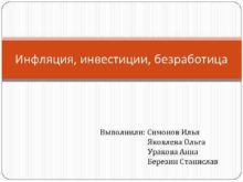 Инфляция инвестиции безработица Выполнили Симонов Илья Яковлева Ольга