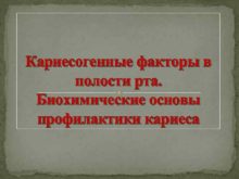 Кариесогенные факторы в полости рта Биохимические основы профилактики