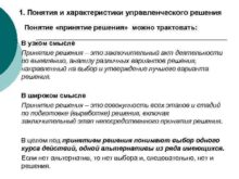 1 Понятия и характеристики управленческого решения Понятие принятие