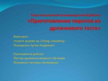 Тема письменной экзаменационной работы Приготовление пирогов из дрожжевого