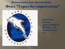 Некоммерческая организация Фонд Город без наркотиков Выполнила ученица