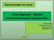 Презентация на тему Олигофрения форма интеллектуального нарушения