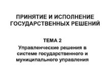 ПРИНЯТИЕ И ИСПОЛНЕНИЕ ГОСУДАРСТВЕННЫХ РЕШЕНИЙ ТЕМА 2 Управленческие