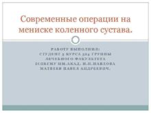 Современные операции на мениске коленного сустава РАБОТУ ВЫПОЛНИЛ