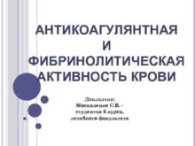 АНТИКОАГУЛЯНТНАЯ И ФИБРИНОЛИТИЧЕСКАЯ АКТИВНОСТЬ КРОВИ Докладчик Москаленко С