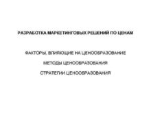 РАЗРАБОТКА МАРКЕТИНГОВЫХ РЕШЕНИЙ ПО ЦЕНАМ ФАКТОРЫ ВЛИЯЮЩИЕ НА