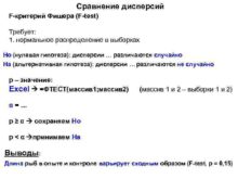 Сравнение дисперсий F-критерий Фишера F-test Требует 1 нормальное