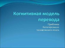 Когнитивная модель перевода Проблемы Категоризации человеческого опыта