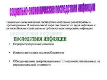 Социально-экономические последствия инфляции разнообразны и противоречивы В значительной