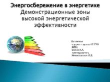 Энергосбережение в энергетике Демонстрационные зоны высокой энергетической эффективности