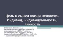 Цель и смысл жизни человека Индивид индивидуальность личность