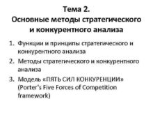 Тема 2 Основные методы стратегического и конкурентного анализа