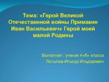 Тема Герой Великой Отечественной войны Примакин Иван Васильевич