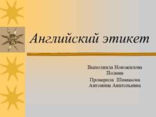 Английский этикет Выполнила Новожилова Полина Проверила Шиманова Антонина