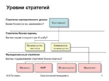 Уровни стратегий Стратегия корпоративного уровня Каким бизнесом мы