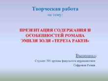 Творческая работа на тему ПРЕЗЕНТАЦИЯ СОДЕРЖАНИЯ И ОСОБЕННОСТЕЙ