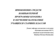 ПРИМЕНЕНИЕ СРЕДСТВ КОМПЬЮТЕРНОЙ ПРОГРАММЫ GEOGEBRA В ОБУЧЕНИИ МАТЕМАТИКЕ