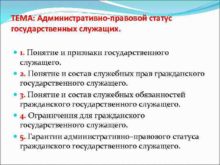 ТЕМА Административно-правовой статус государственных служащих 1 Понятие и