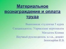 Материальное вознаграждение и оплата труда Выполнила студентка 3