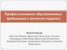 Профессионально обусловленные требования к личности педагога Подготовили Иванова