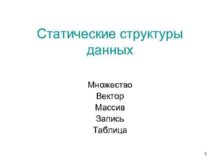 Статические структуры данных Множество Вектор Массив Запись Таблица